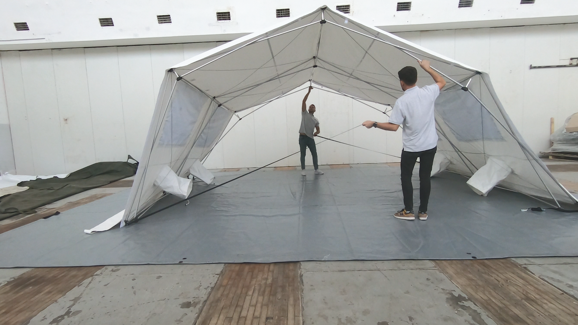 Imaginez : deux pompiers travaillant en parfaite synchronisation. En moins de soixante secondes, vous disposez d'un abri opérationnel prêt à l'emploi. Voici comment la magie opère :