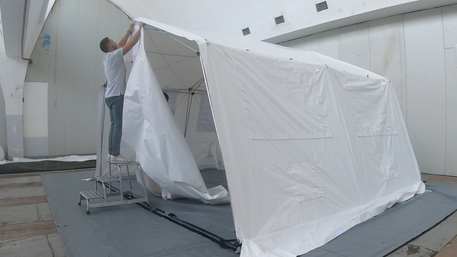2. Ensuite, soulevez la toile de la tente pour la placer sur l'armature.